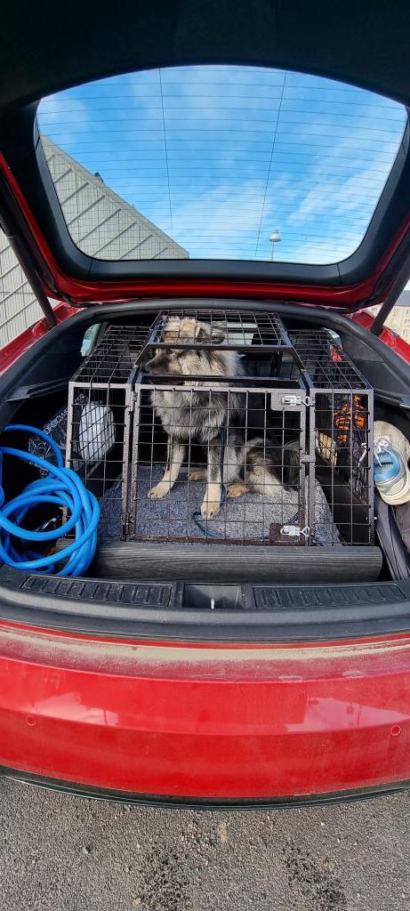 Köpte grejerna av en kille i Tesla Köp och sälj-gruppen på FB. Gallret in mot kupén är tillverkat av Travall och finns att köpa lite varstans. T ex: https://www.hundibil.se/travall-lastgal ... s-(2012_)/fth skrev:Det där var ju en väldigt elegant och praktisk lösning, var har du hittat den? Finns den till X också?MWall skrev:Vi har bara en plutt än så länge men ska bli ca 40 kg som fullvuxen. Har löst det utan skrymmande bur så det blir lätt att använda bagaget till annat också. Dessutom tar inte hunden upp hela om man inte vill. Sidoväggen är flyttbar så hunden kan få 40%, 50%, 60%, 70%... Eller vad man nu tycker är lämpligt.