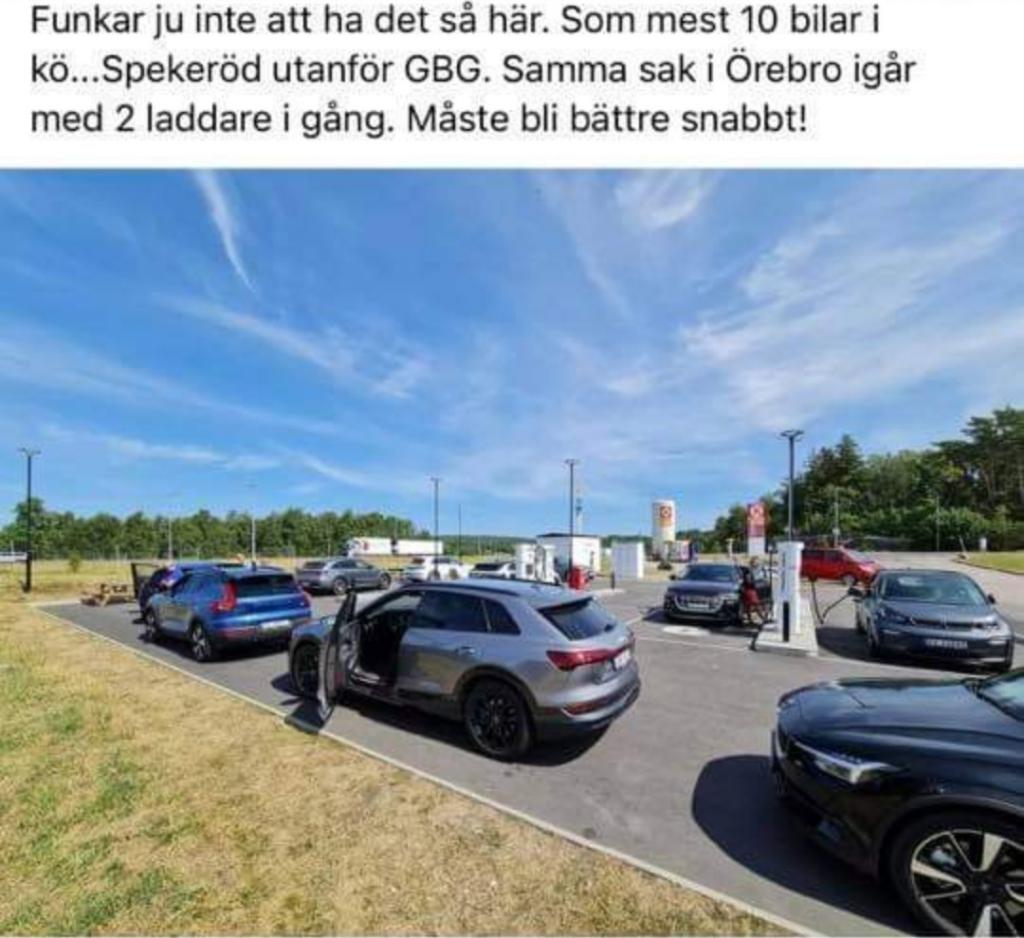 Det är också tydligt att många av de bilar som stod i kö har stora batterier som kräver mycket effekt för att ladda snabbt.