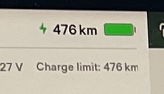 Så typ 475-476 km motsvarande vid 100% då :)