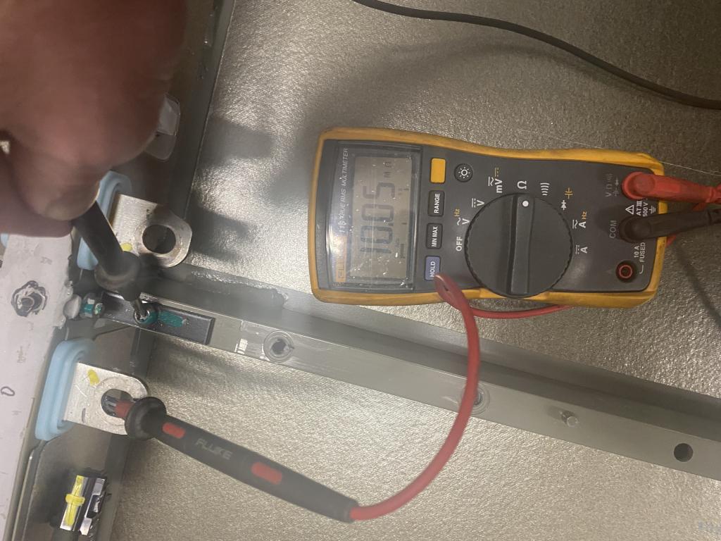 På alla modulerna har jag spänning mellan ”chassie & plus” (blå och grön pil) och mellan ”chassie & minus” (blå och gul pil). Så ska det inte vara och det är anledningen till isolations felkoden F123. Korrekt?
