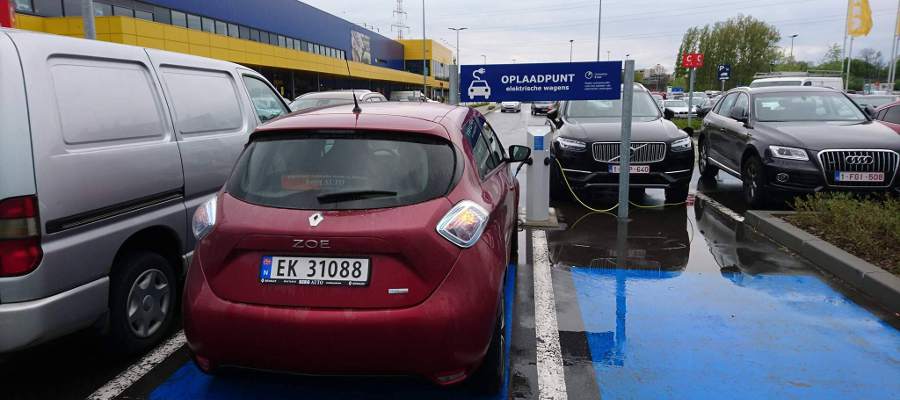 Paris avklarat och nu var det dags för hemfärd. Vi ställde kosan mot IKEA i nordöst och fann ett vanligt IKEA-varuhus med en rejäl snabbladdare för Chademo, CCS och AC 43 kW. Bara att ladda – gratis. Damen i receptionen hälsade oss välkomna på svenska! Inte alltid det händer! Bra laddställe och där blev det lunch. Inte bara köttbullar utan det blev lax och sallad! Efter shopping både på IKEA och på CORA så riktade vi in oss på Belgien. Här hade vi inte bokat något hotell/värdshus utan när klockan blev sju så började vi se oss efter härbärge. Vi hade riktat in hos på nästa IKEA varuhus i Hasselt och därför hamnade vi sydöst om Charleroi på ett mycket piktoreskt slott! Eller rättare sagt lantgården som hörde till slottet då. Naturligtvis fick vi ladda här MEN det fungerade inte. Körde runt till alla stall och uthus som hade ett uttag men tji, ingen laddning. Trefas fanns men vi hade ingen adapter att prova med. Jag har hört någonstans att det finns områden i Belgien som likt Norge och Albanien har IT-nät och inte TN-nät och jag misstänker nästan att vi hamnade på just ett sån’t ställe!! Felmeddelande var exakt detsamma som om man försöker ladda på ett IT-nät i Norge! Nåväl – det var ett jättebra ställe så vi stannade! Nya planer nästa dag!! Letade oss fram till flygplatsen i Charleroi och hamnade på Ryan Airs associerade hotell Van der Valk!! Detta hotell verkar vara ett mycket bra övernattningsställe för oss elbilister och till ett efter vad det verkade hyggligt pris med hög standard. Här finns en av Teslas destinationsladdare. De laddarna passar inte en Zoe men det fanns ytterligare två till med lägre effekt! Efter lite paus så fick vi nog med ström för sträckan vidare förbi Namut och upp till Hasselt.