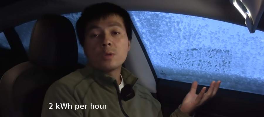 Han kom fram till samma förbrukning i verkliga livet som vi räknade ut ovan: 2 kWh per timme. Då hade han inte bara bekvämt varmt i bilen utan kunde också spela spel och titta på filmer medan han väntade.